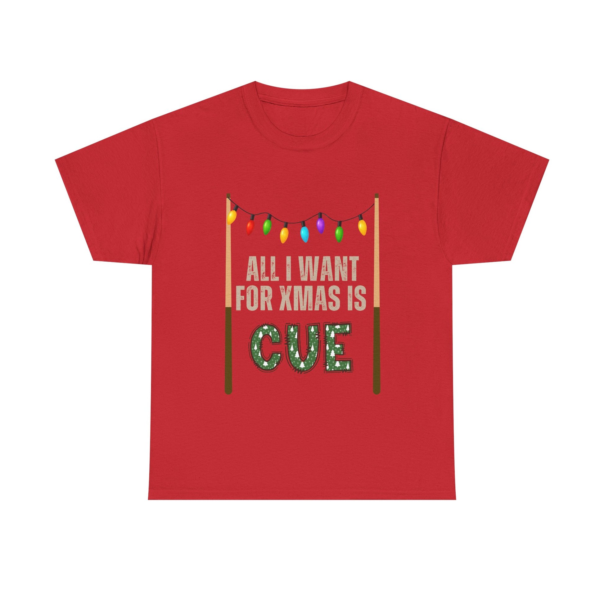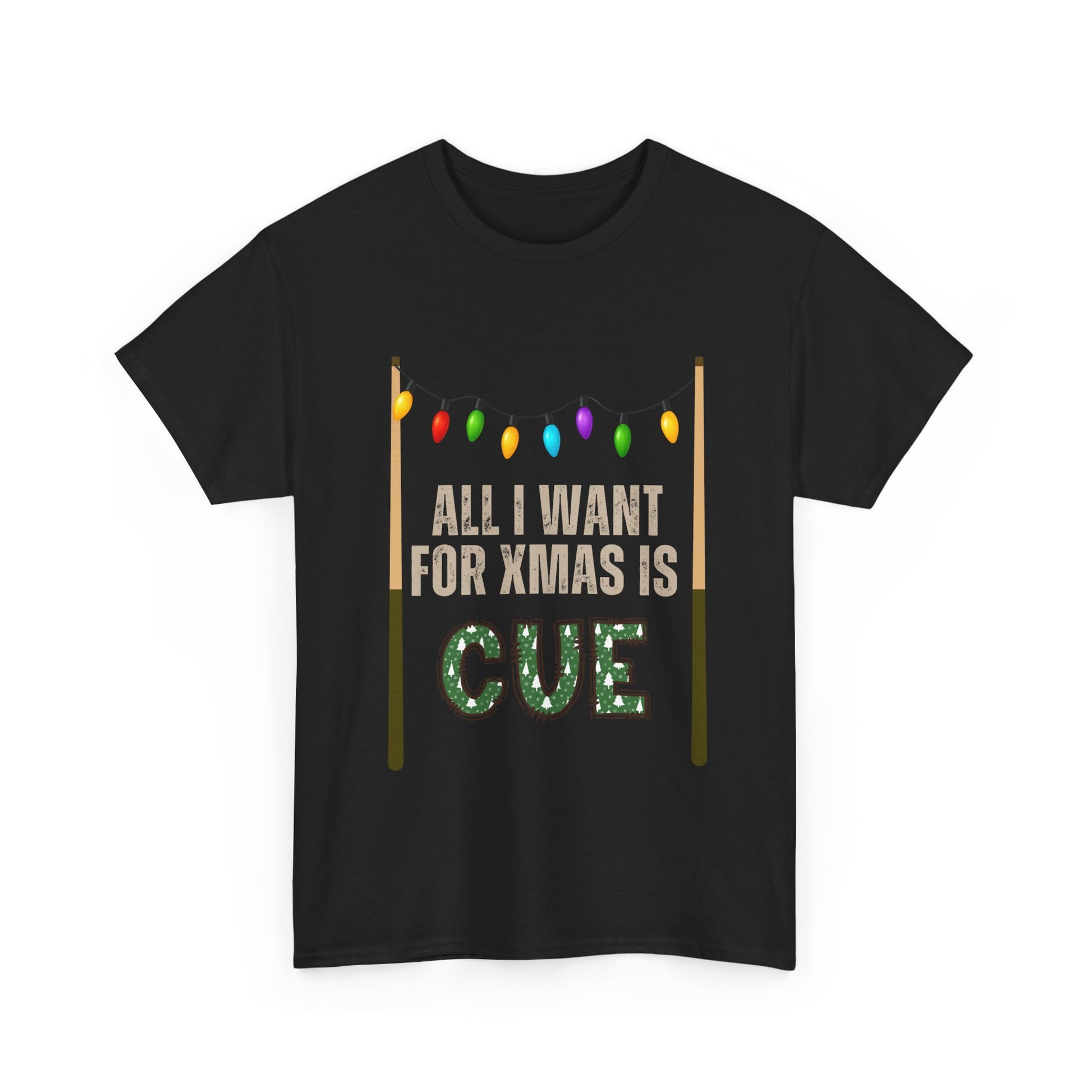 Pool Cue Christmas T‑Shirt – "All I Want for Xmas Is Cue" Holiday Tee